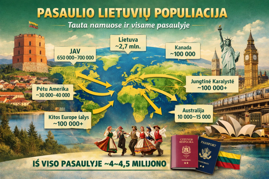 Iš viso pasaulyje – apie 4–4,5 milijono lietuvių kilmės žmonių.