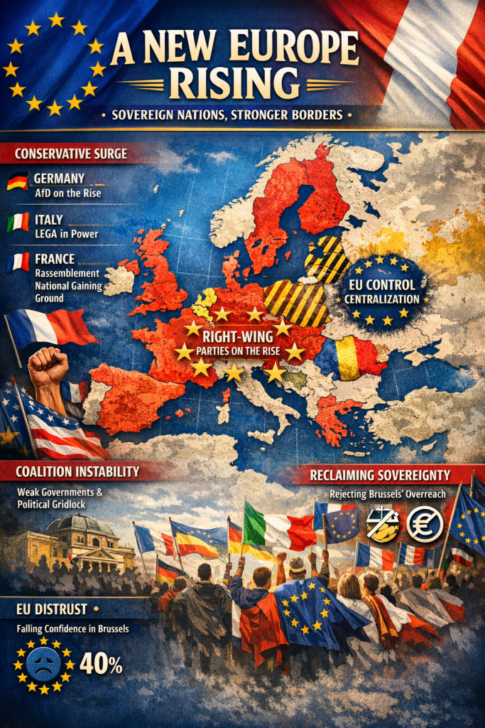 Europe stands at a critical crossroads. The rising influence of right-wing and conservative parties, combined with coalition instability, declining trust in Brussels, and increasing political fragmentation, signals a clear message: Europe must prioritize national sovereignty and the interests of its citizens.