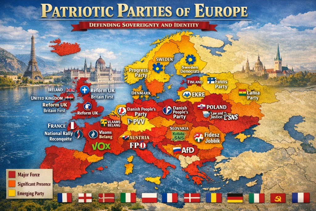 Across Europe, a powerful political resurgence is underway. From the Atlantic coast to the Baltic shores, patriotic parties are emerging as the defenders of national identity, culture, and heritage. In an era defined by mass migration, globalist agendas, and the erosion of traditional values, these parties stand firmly for their nations, their people, and the enduring legacy of European civilization.
