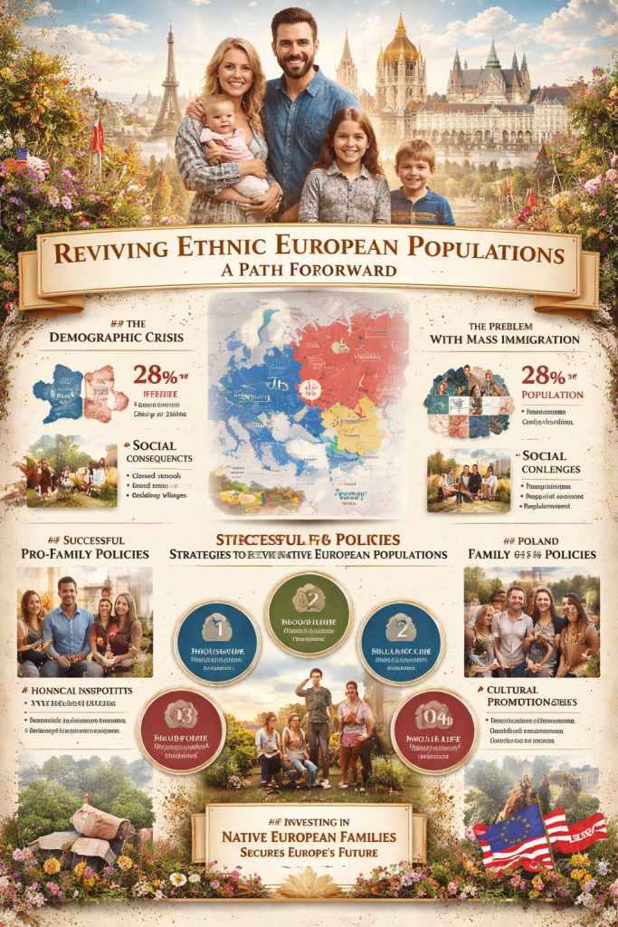 Europe’s demographic crisis is not insurmountable. By prioritizing the revival of native European families, governments can ensure economic stability, cultural continuity, and social cohesion. Immigration may supplement the workforce temporarily, but only the growth of Europe’s own people guarantees the survival of its heritage and identity.